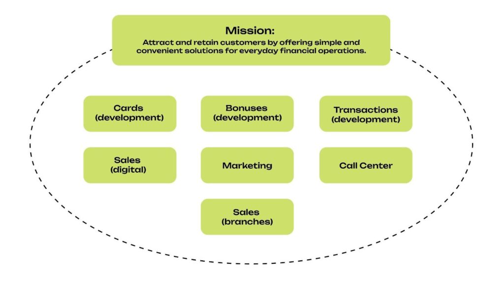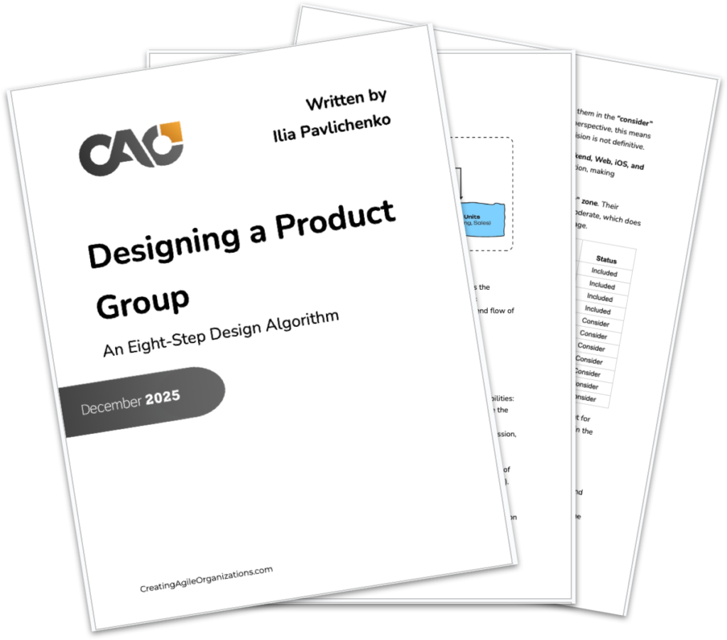 The paper demonstrates the full design process using a real case of establishing the Daily Banking Product Group in a large financial organisation. The algorithm starts from defining the mission and essential parts of the unit, identifies the organisational capabilities required for strategic differentiation, and progressively narrows the scope of the product group by analysing: